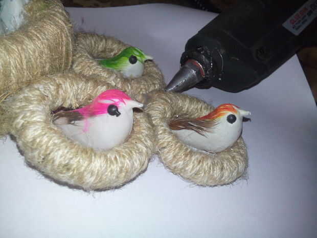 Después de algún tiempo tomar todo y coloque el ave en y pegarlos en la misma forma