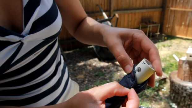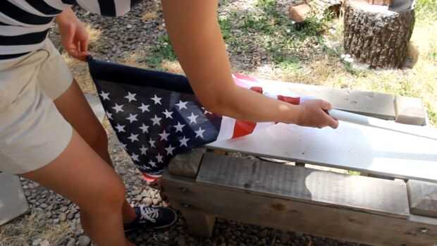 Ya había un agujero en la bandera (si la tuya no tiene uno, siempre puede cortar un pequeño agujero). Corte un orificio en el tubo así y me puso en un tornillo de casquillo de.