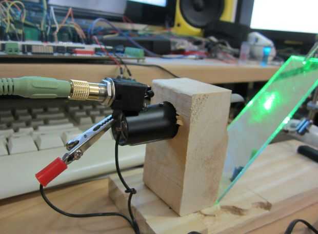 Así que una vez que usted ha conectado su fuente de audio, debería ver el pulso del laser según bomba y volumen de la música. Si usted apunta a un trozo de un espejo en ángulo a 45 grados, que la luz va en contra de su techo para un efecto cool! Usted verá un patrón de starfield contra el techo pulsando con la música.