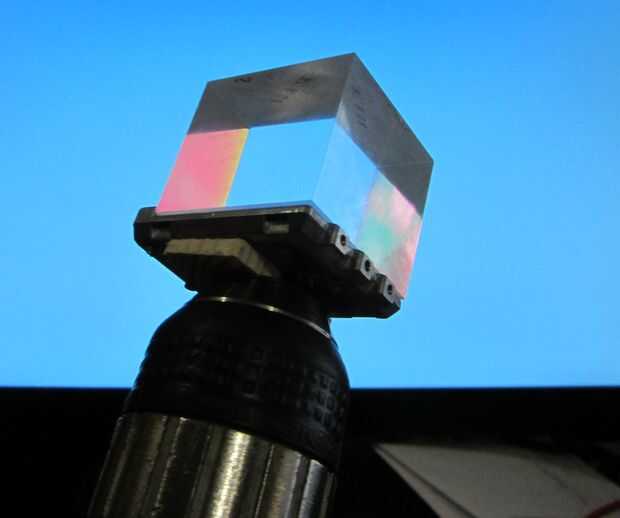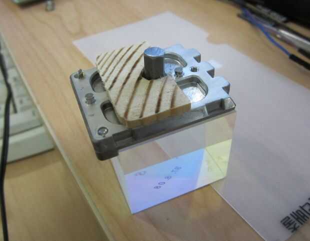 Para nuestro efecto de flair (bastante un poco de estupidez), se utilizó un color partir prisma de un proyector roto. Vino con su propio chasis poco y tenía un agujero solo tornillo. Tan prever una base de madera, había colocada en el chasis con un tornillo y luego ajustaron una broca rota en su centro.