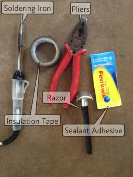 Herramientas necesarias: - aislante cinta, pinzas con separador incorporado o separado de stripper, maquinilla de afeitar, soldador, etc...