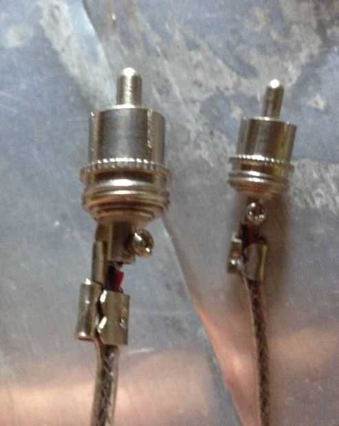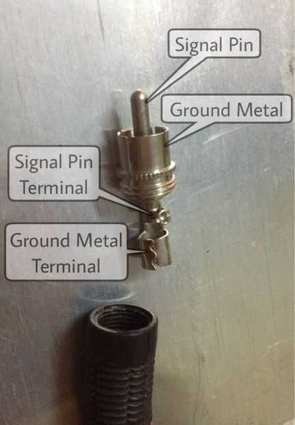 Conectores RCA se puede preparar fácilmente ya que tiene sólo dos terminales. Después de seguir el paso 1, siendo común a ambos conectores de los cables de tierra, conectar y soldar el cable rojo a la terminal de pin señal del gato rojo y lo mismo para el negro. Siga el último diagrama que muestra el cableado de conectores RCA. Luego tome el alambre firmemente a los maxilares caso metal.