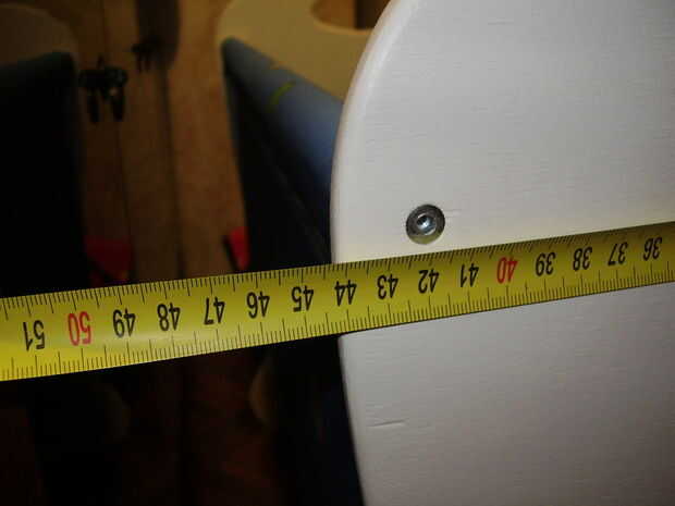 Nada especial, solo tomar una sierra eléctrica (o utilice la herramienta mano si usted decide usar la forma simple) y vio la forma previamente trazada. El ancho de la cabecera de la cama debe ser de unos 4cm más ancho que su colchón es. En mi caso es 44cm, la altura es de 73cm.