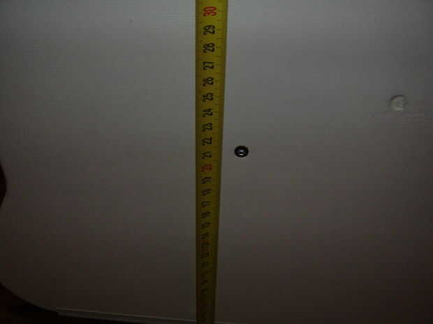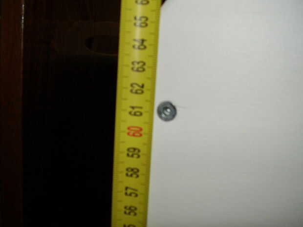 Marca de centros para los agujeros (superior: 2 artículos, 40 cm entre ellos, 61cm del suelo, 1 artículo: en el centro, 21cm desde el piso). Taladre los orificios. broca de 7mm es bueno para esto.