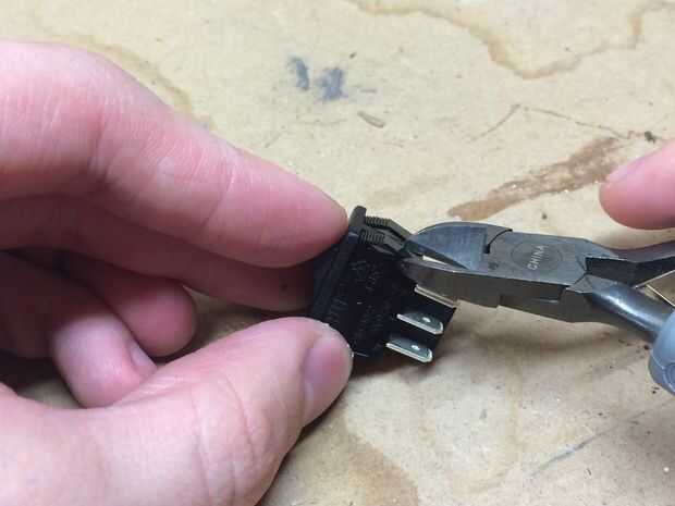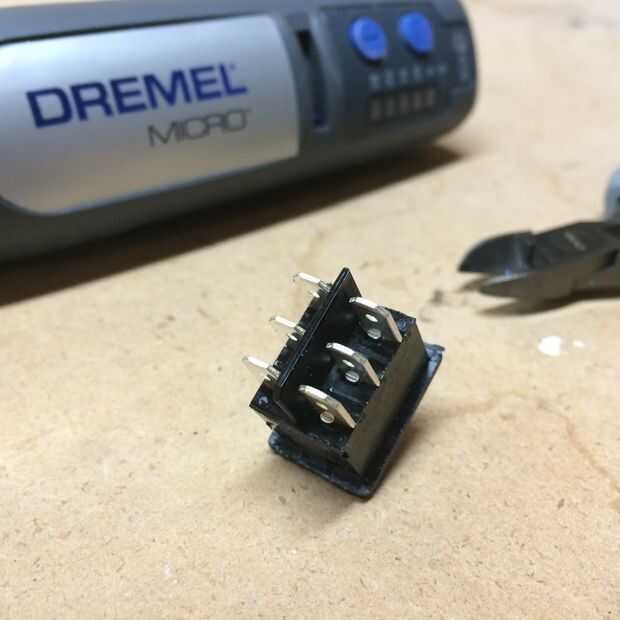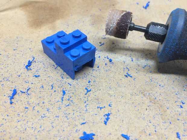 Si estás leyendo este paso, usted debe asilo elegido un interruptor que no encaja absolutamente en su marco LEGO sin algunas modificaciones. Así que si ese es el caso, uso una Dremel para afeitar el interruptor o LEGO necesaria piezas lo suficiente como para que puedan encajar.
