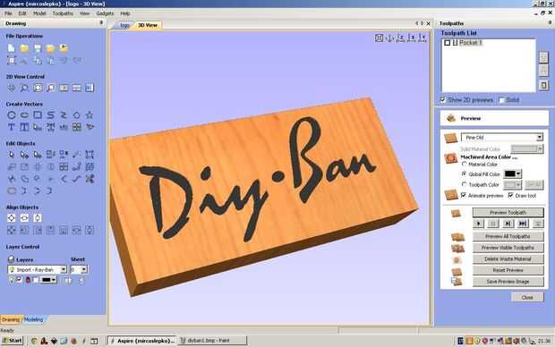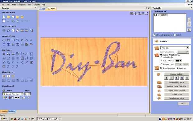 Con Vectric Aspire preparé gcode escrito y exportado para el mecanizado de un bolsillo con mi laser cnc.