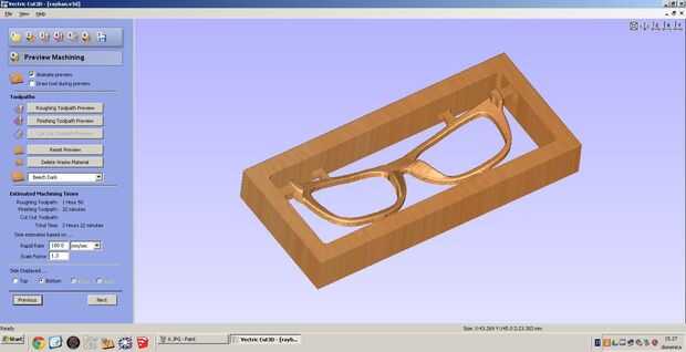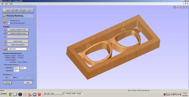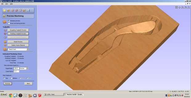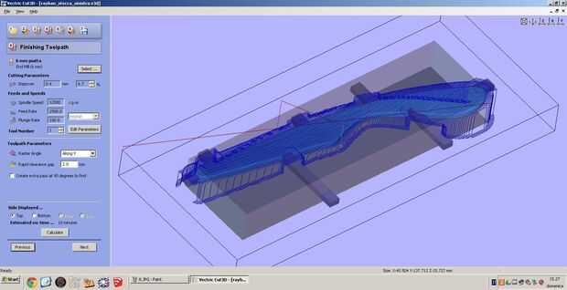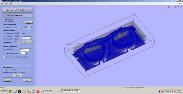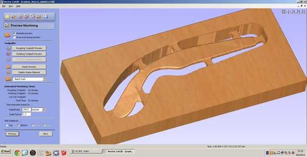 La madera en cuestión es muy difícil así que me puse para el desbaste de una profundidad de corte de 1 mm y 2,6 mm el ancho de paso, con ancho de paso de 0,3 mm