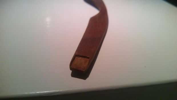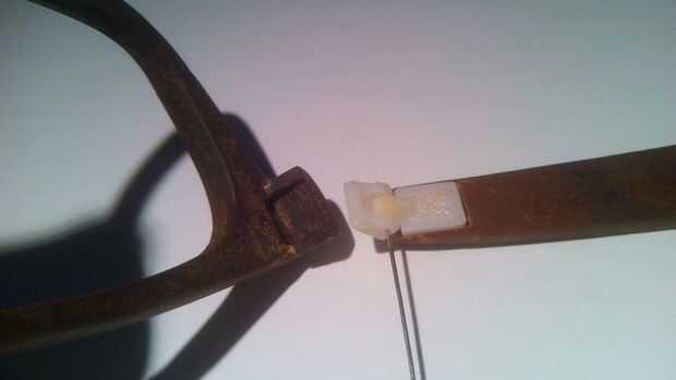 Otra delicada operación es hacer bolsitas para alojar las bisagras en el marco y templos.