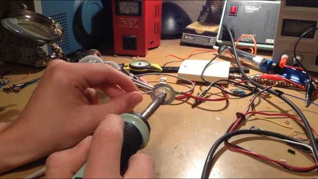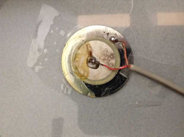 En primer lugar, cortar el cable de un par de auriculares y tira de ambos extremos. Luego, soldar el cable de tierra del cable de auriculares a la placa de outer(larger) de cada elemento piezoeléctrico. Después de eso, soldar el cable de audio izquierdo y derecho en la placa de top(smaller) de cada elemento piezoeléctrico respectivamente. La electrónica ahora debería estar lista.
