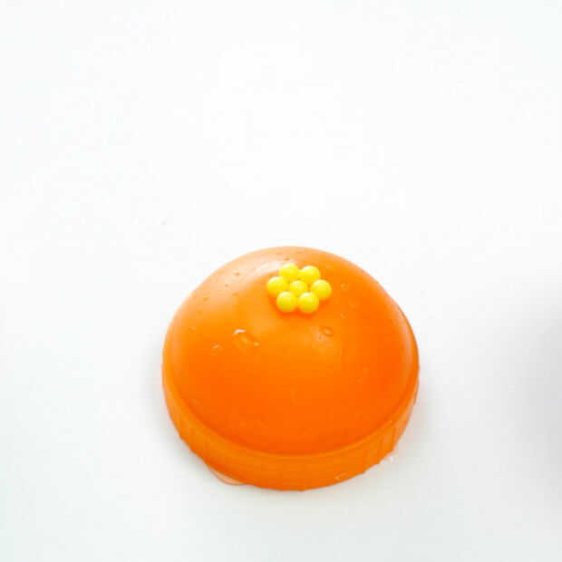 • Añadir los beados. Comencé con un grano amarillo y coloca los otros granos alrededor de él. Rocíe agua para hacer los granos pegan.