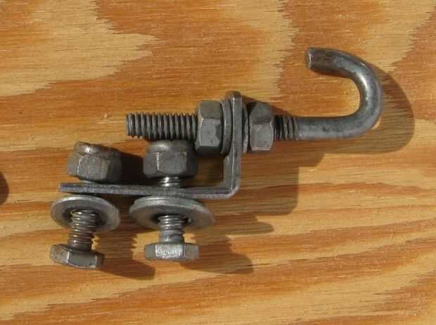 3. sándwich el gancho roscado entre dos tuercas y dos arandelas de cerradura, como se muestra en la foto de abajo y apriete. También puede utilizar las tuercas de fijación de nylon en lugar de arandelas de seguridad.