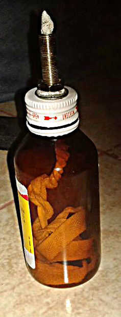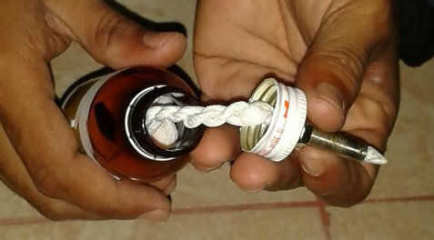 4. Llene la botella con queroseno o cualquier otro líquido inflamable de fina. Combustible Zippo sería mejor (creo que. Lo no he nunca utilizado.)