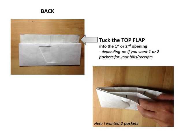 Meter en la apertura de 1 º o 2 º, dependiendo de si quieres 1 o 2 bolsillos de factura/recibo.