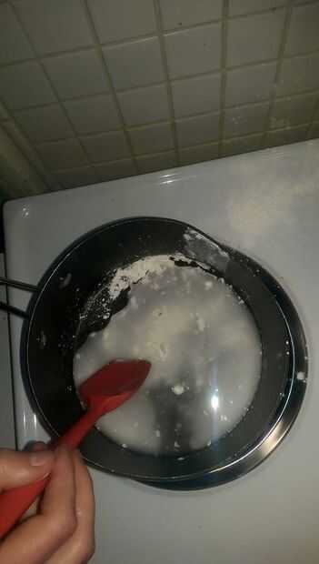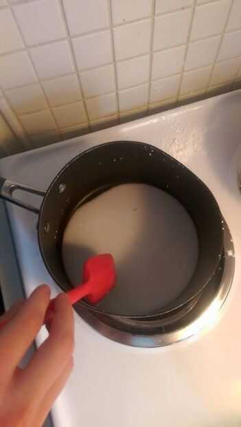 No importa el orden. Simplemente mida todos los ingredientes (esto no es ciencia de cohetes, así que no necesita ser más exactos) y mezclar en la olla. Revuelva hasta combinar, luego encienda la estufa a fuego bajo/medio.