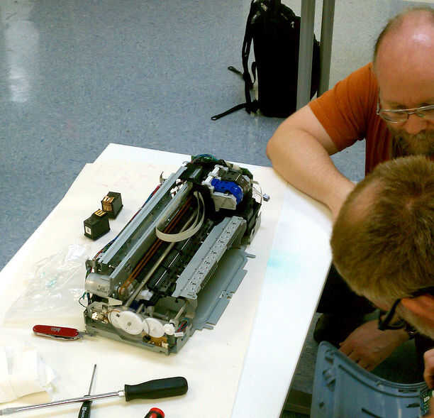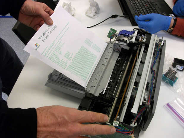 Una vez que tienes la impresora todo desnudo y descubrió cómo activar el interruptor de tapa cerrada - imprimir algo! Será una buena prueba para ver si has golpeado algo flojo y si todavía puede funcionar todos los botones. Además, es sólo maldito frío al ver su trabajo cerca una impresora de inyección de tinta. Mantenga los dedos fuera del camino aunque - ésos cartuchos moverse rápido!