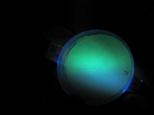 Como resultado, dondequiera que habíamos impreso arabinosa en el papel de filtro, ahora vimos la e. coli luz verde bajo luz UV! Nota que la belleza de este experimento radica en su sencillez: sólo tuvimos que imprimir con una solución de azúcar simple, en lugar de células vivas voluminosas; y nosotros estábamos impresión en papel, así que incluso no tenemos que cambiar el maquinaria de manejo del papel. También puede probar la impresión con antibióticos, o incluso proteínas, como enzimas o factores de crecimiento.