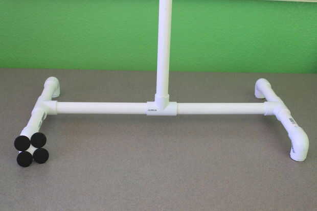 A continuación nos inserta las 4 patas en los extremos abiertos de las 2 t de PVC en el centro de la base y asegurada utilizando un martillo.