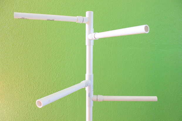 El primer paso para crear los brazos de la percha es marcar y cortar el tubo de PVC de 5 ft x 3/4" en trozos de 4-1ft.
