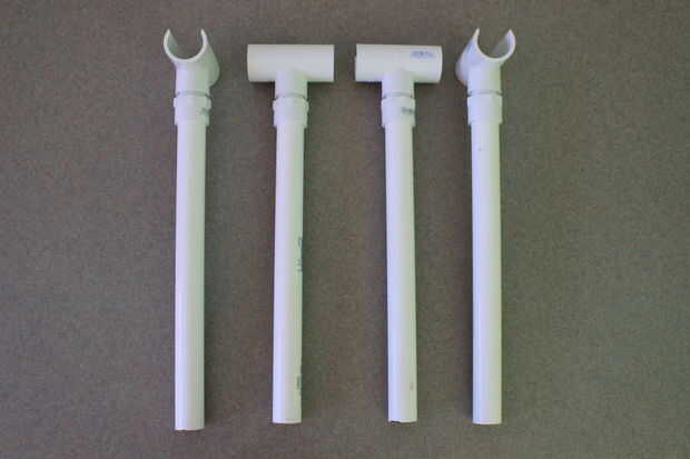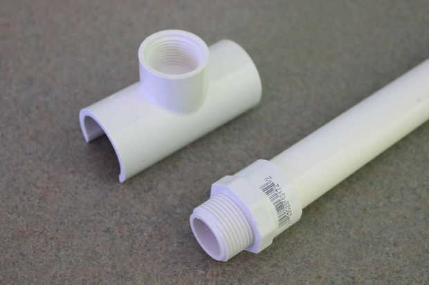 El siguiente paso es agregar que adaptadores de PVC de 1" rosca. Las piezas de PVC de 1 pie se inserta en el extremo no roscado de los adaptadores y martilladas en su lugar.