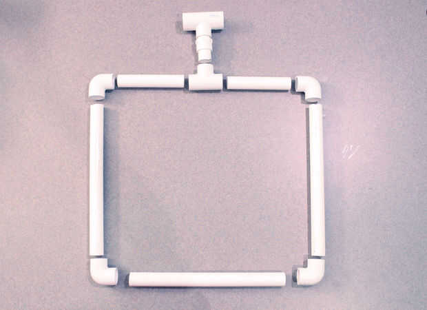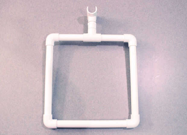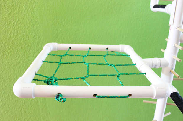 Una vez que las piezas se cortan puede montar la plataforma. La plataforma se crea en forma cuadrada, con las piezas de 3-1ft para crear 3 lados, los codos de 90 grados se utilizan para las esquinas, y 2-5 1/2" piezas se insertan en la t de 1" para crear el lado restante. La apertura de la t conviene hacia el exterior para que pueda ser conectado a un brazo de la percha en el stand de pájaro. Las 2 barras se unen mediante tubería de PVC de 3/4", unos 2" largo y para nuestros usamos algunos pedazos de desecho que ya teníamos. Para asegurar la plataforma nos martilló todas las piezas en su lugar. Ver las fotos de una visual clara del trazado.