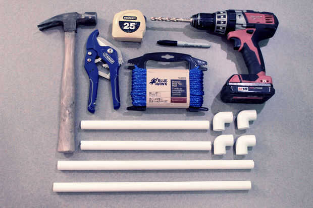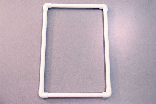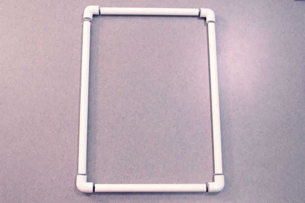 Una vez que las piezas se cortan puede montar el cuadro. Se crea el marco en forma de rectángulo con las piezas de 2-1ft para crear la parte superior y parte inferior y los 2-18" pedazos para los lados, luego conectarlos con los codos de 90 grados de 4-1/2". Una vez que todas las piezas se presionan juntos puede asegurarlos con un martillo.