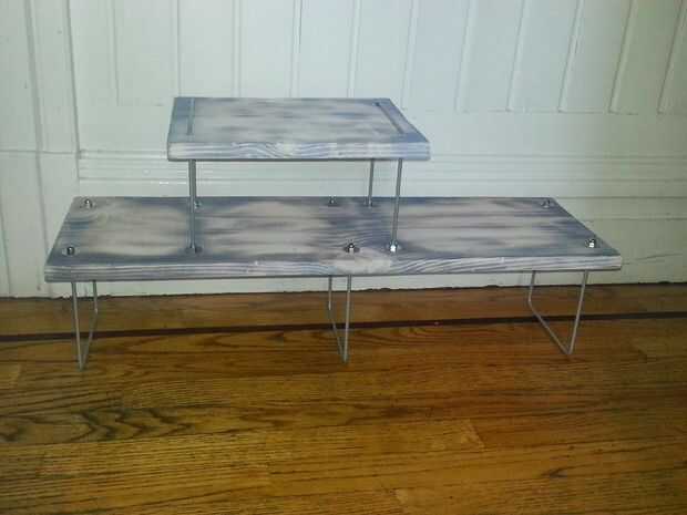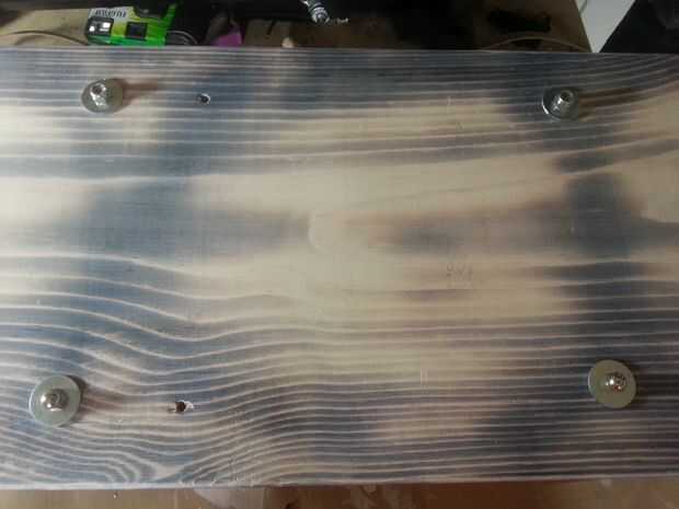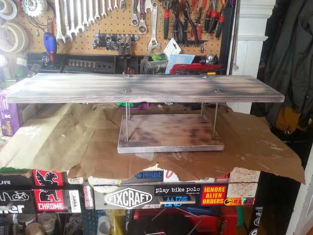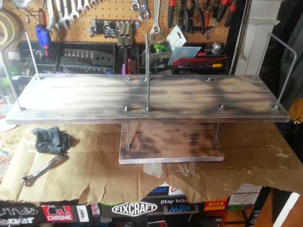 Empecé presionando mis primeros 2 ' U de a través de la parte superior de mi estante superior hacia abajo y unido a la parte superior del estante inferior. Donde la parte roscada de la 'U' se conecta al estante inferior de la secuencia es de arriba a abajo:
