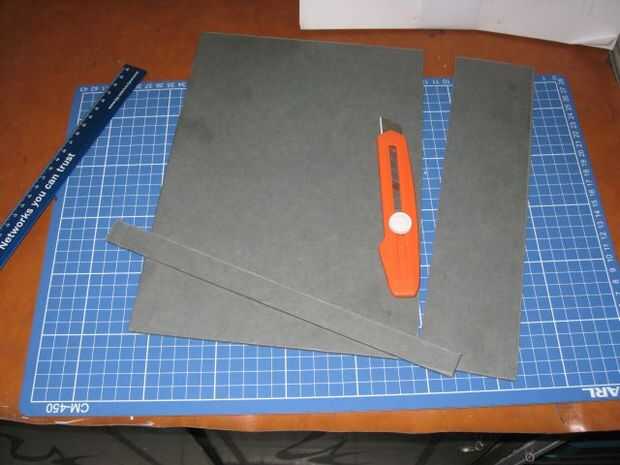 use una hoja de papel A4 como guía. ponerlo en la carpeta de anillo luego corta distancia con una regla de metal. piezas deben ser igual a dimensiones de papel A4. una carpeta de anillo tiene dos caras, por lo que también consigue dos "conchas" para su objetivo. Recuerde usar una almohadilla de corte o de otra pieza de carpeta de anillo, o cualquier cosa que usted y su mesa de trabajo.