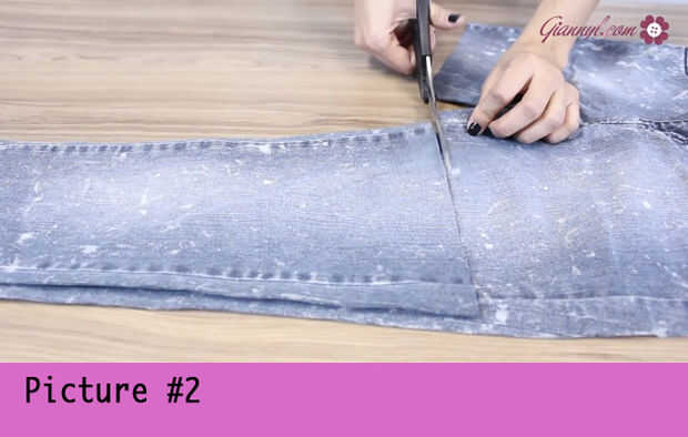 insumos necesarios: tijeras, lápiz, pantalones vaqueros de la tienda de segunda mano, paja, blanqueador, bedazzler, lavadora, espárragos, hierro-en remiendo y hierro.1) marcan los jeans a la longitud que desee cortar.2) cortar los jeans en donde se l