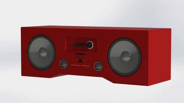 Después de ver los intestinos de la amp comenzó a diseñar los Bbox en CAD. Creo que aterricé en un aspecto muy impresionante para él. Las condiciones eran: tan pequeño como sea posible, como fresco como sea posible, lo mejor posible. Tengo que mencionar que no ha diseñado el Bbox todo en CAD de principio a fin, solamente la capa externa. Todo lo que hay dentro o en la parte posterior fue averiguado como que progresó a través de la construcción. Qué tenía en mente era utilice madera contrachapada para la capa externa porque es más ligero y más fuerte y MDF en el interior de amortiguación de sonido.