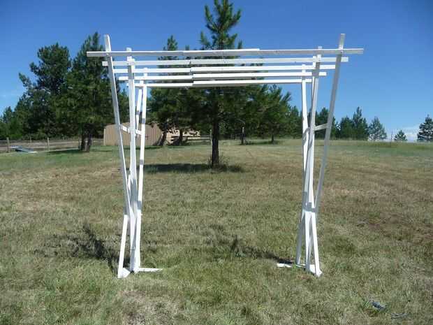 Cortar cada una de las tablas de 8 pies hasta 56". Sujete en pares con una superposición de 12" en el centro con los 3 1/2' estufa de pernos. La longitud combinada total de cada viga de la azotea 88", con la opción del pico se ver en la foto.