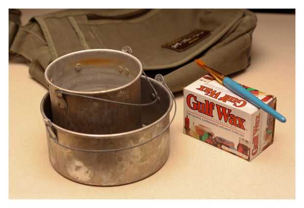 3) cera. Muchos lugares recomiendan una mezcla mezcla de parafina y cera de abeja, pero usaba parafina recta, y parece que han salido bellas. Usted puede recoger una caja de libra de cera de parafina en la sección de conserva de Walmart o tu tienda local de comestibles. No necesita más de uno o dos de las barras de cera incluidos. -ENLACE: http://bit.ly/fsoxAU