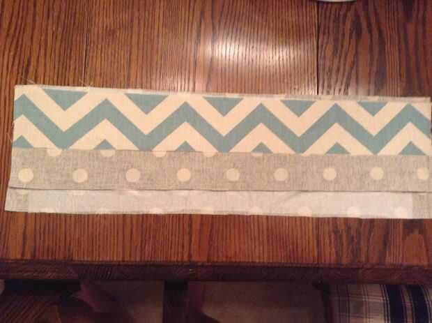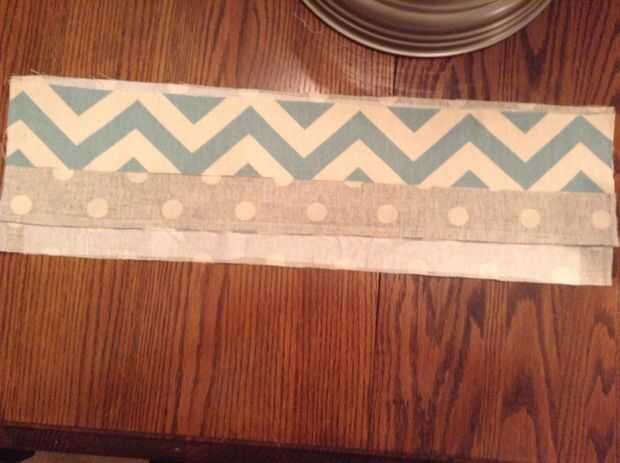 Alinee un 1 3/4 x 21 contraste tira reverso hacia arriba a lo largo del borde inferior de la tira de impresión. coser una costura de 1/4 a través de todas las capas
