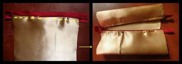 Para esto estoy usando tela satén. Fije la cremallera para el