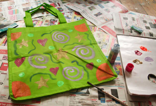 Ahora, estás listo para canalizar su interior Picasso y pintura de todos modos que te gusta! He pintado remolinos, corazones, garabatos, estrellas, puntos y ángulos. También puede añadir algún adorno caliente pegado en algunas joyas, plumas, perlas, botones y joyas! Ahora, deje su bolsa hacia fuera para que la pintura y el pegamento se seque!