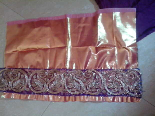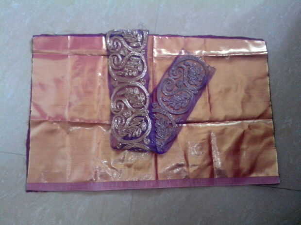 1. Tome el pedazo de la tela del brillo y el amplio cordón.