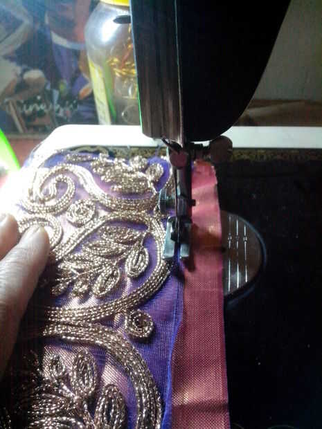 3. el paño con el cordón cosido se muestra.