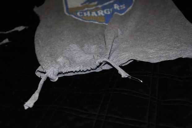 esto es lo que hago cuando uno de lo muchacho ruinas una camisa otra vez.  Yo uso los brazos pero también se puede utilizar el torso de una camiseta