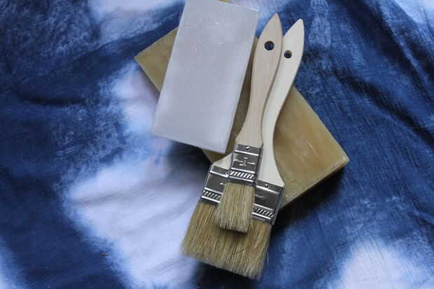 Para su bolsa de la cera, necesitarás la cera de parafina, cera de abejas, cepillo de 1/2 pulgadas y una configuración de doble parrilla (sólo usé un viejo puede limpio).