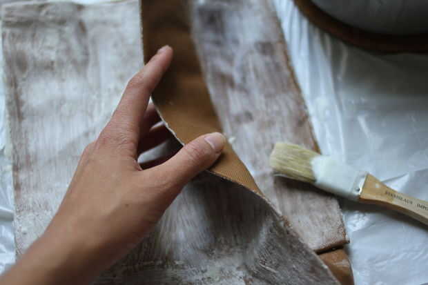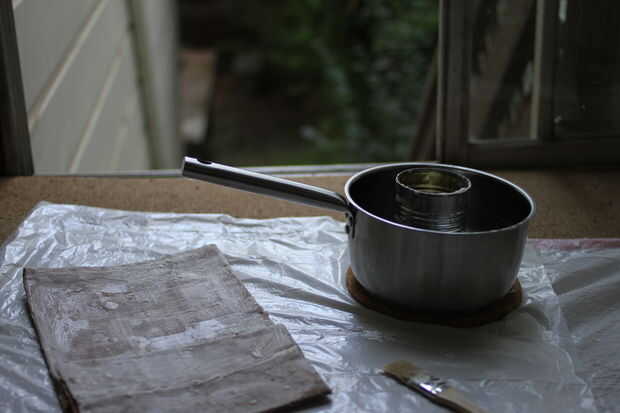 Con un cepillo (las cerdas 1/2-1 pulgadas), extender cera en su bolso. Dejé mi cera en el agua caliente para que no seque como había encerado a mi tela. Asegúrese de conseguir cera en todos los rincones de modo que se cubre el entero fuera de la bolsa. No dude en añadir un poco más cera a la parte inferior y costuras (cuanto más gruesa la cera, el más robusto y más oscuro su final encerado tela). Dejó su bolso para que la cera se endurece totalmente en seco.