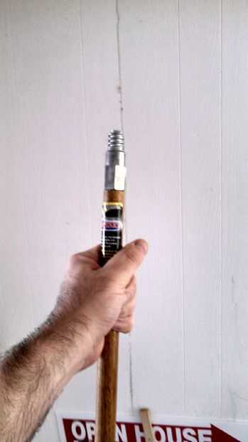 Yo iba a comprar una escoba con mango de madera espesor 1 1/2 pulgadas pero como estaba caminando al cheque hacia fuera vi el polo de pintura que no necesita tanto recorte y era unos cuantos dólares más barato.