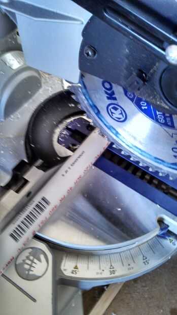 El poste era un poco demasiado grande para caber en el PVC usé un cincel de madera para afeitar apagado solo basta que el poste se deslice dentro del tubo de 4"
