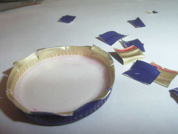 PIC.8 y 9: empezar a doblar los bordes de las chapas sobre el abrelatas para que permanece en su lugar