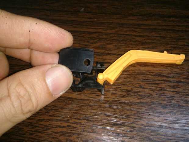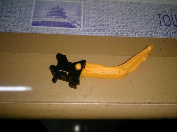 Encontrar una parte que tiene casi el mismo grosor que el brazo y luego hacer un agujero para sujetar el brazo. Simplemente use un cortador y taladro en él. Luego busco otro plano plástico sostener el otro lado del brazo y perfore un agujero con el mismo tamaño de ala del brazo llegar a través de él.