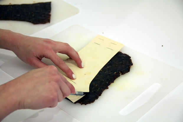 Cortar un patrón: cortar el patrón de papel. Utilice un cuchillo x-acto o un cuchillo muy afilado para cortar las piezas. La cecina breve mejor aspecto tiene los bordes muy rectos.