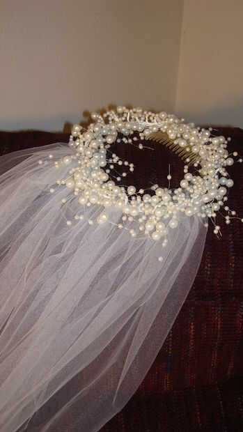 Esta es la versión más simple de los tres velos que hice. Me tomó una hora poner juntos después de que decidí qué hacer con él. Muy simple.