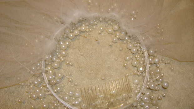 Para el velo-anillo vela necesita decidir dónde colocar el peine en la base y cuánto tiempo su tul. Añadir unas pocas pulgadas a ese número para obtener su longitud de corte.