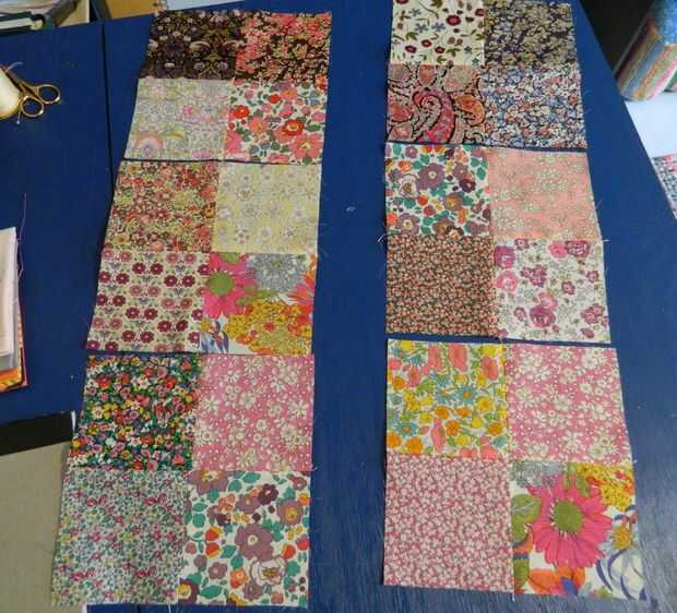 * continúe este proceso hasta que tenga 12 grandes plazas y una extra 2 pequeños cuadrados cosidos juntos (que deben ser igual a 50).