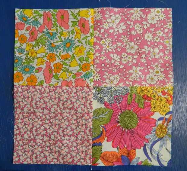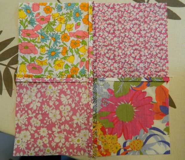 * Coser estos cuatro juntos, coincidencia de la costura del centro, con costura de 1/4".