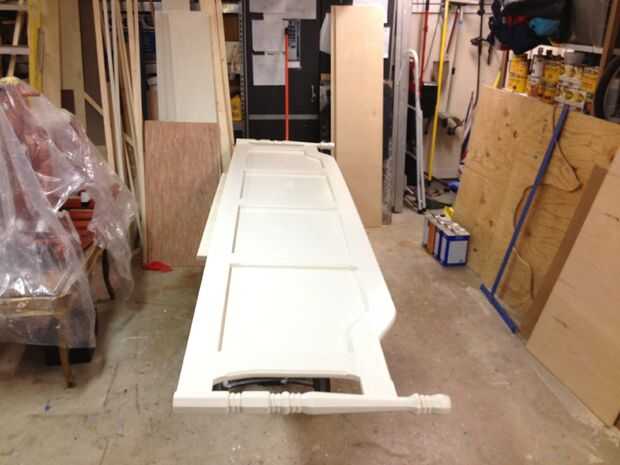 La cabecera fue lijada preparada y pintada de blanco antiguo.