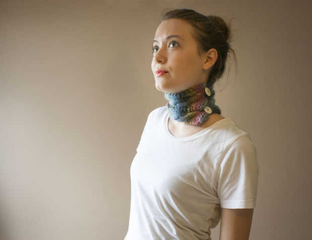 Repetir filas de cable patrón 1-8 hasta la longitud deseada, y luego tejer 2 filas. BIND off y tejer en los extremos. Bloquear si es necesario. Coser botones y disfruta de tu nuevo calor con una taza de chocolate caliente!